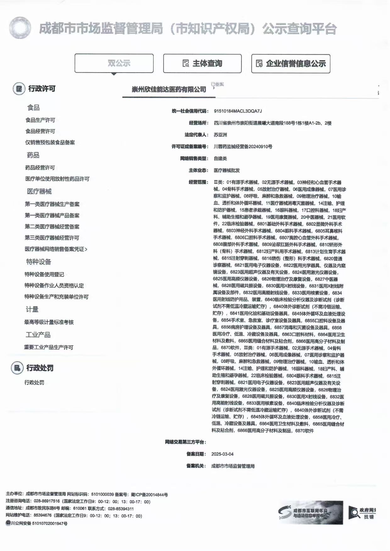 营业执照:91510184MACL3DQA7J | 第二类医疗器械经营备案凭证:川蓉药监械经营备20240910号 | 互联网药品信息服务资格证书:(川)-非经营性-2024-0060 | 互联网药品医疗器械信息服务备案编号:蜀ICP备20014844号